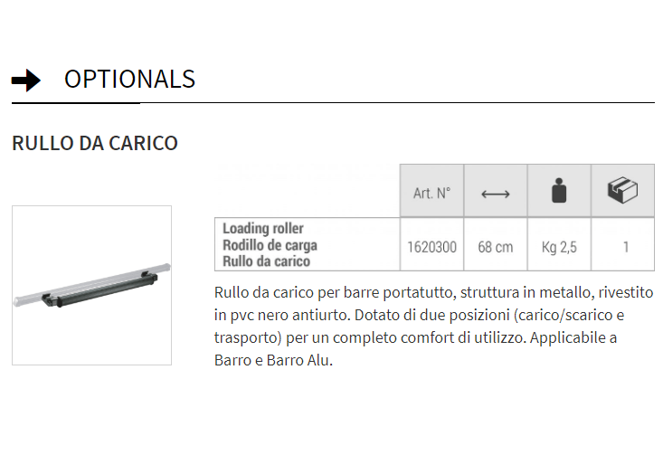 Adattatori per il fissaggio su barre in acciaio (max 65x40 mm), compresi.