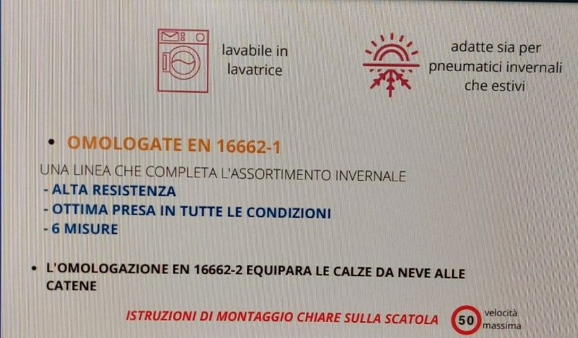 CALZE DA NEVE PER AUTO OMOLOGATE EN 16662-1 TAGLIA S M L XL XXL a partire da 30,00 euro